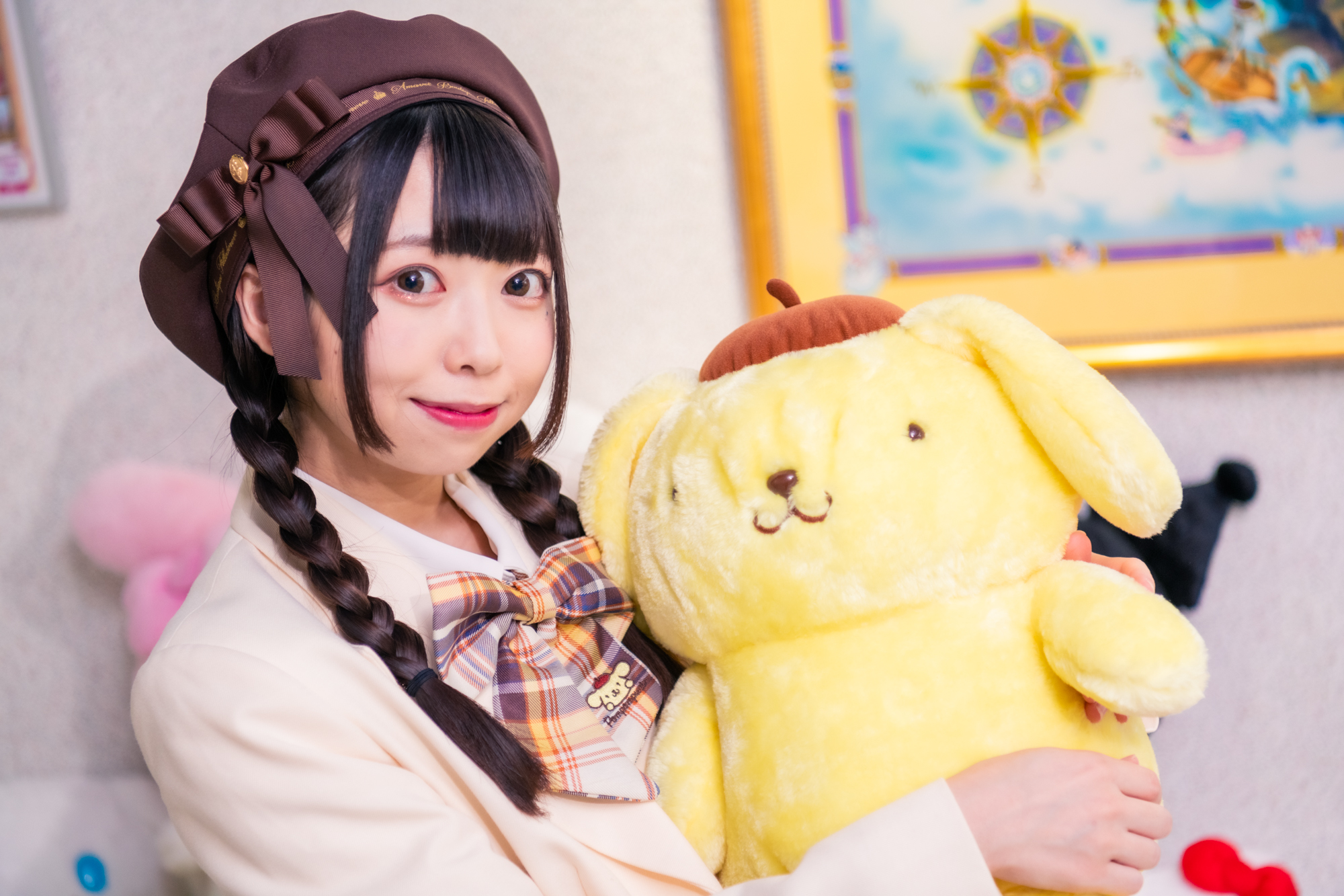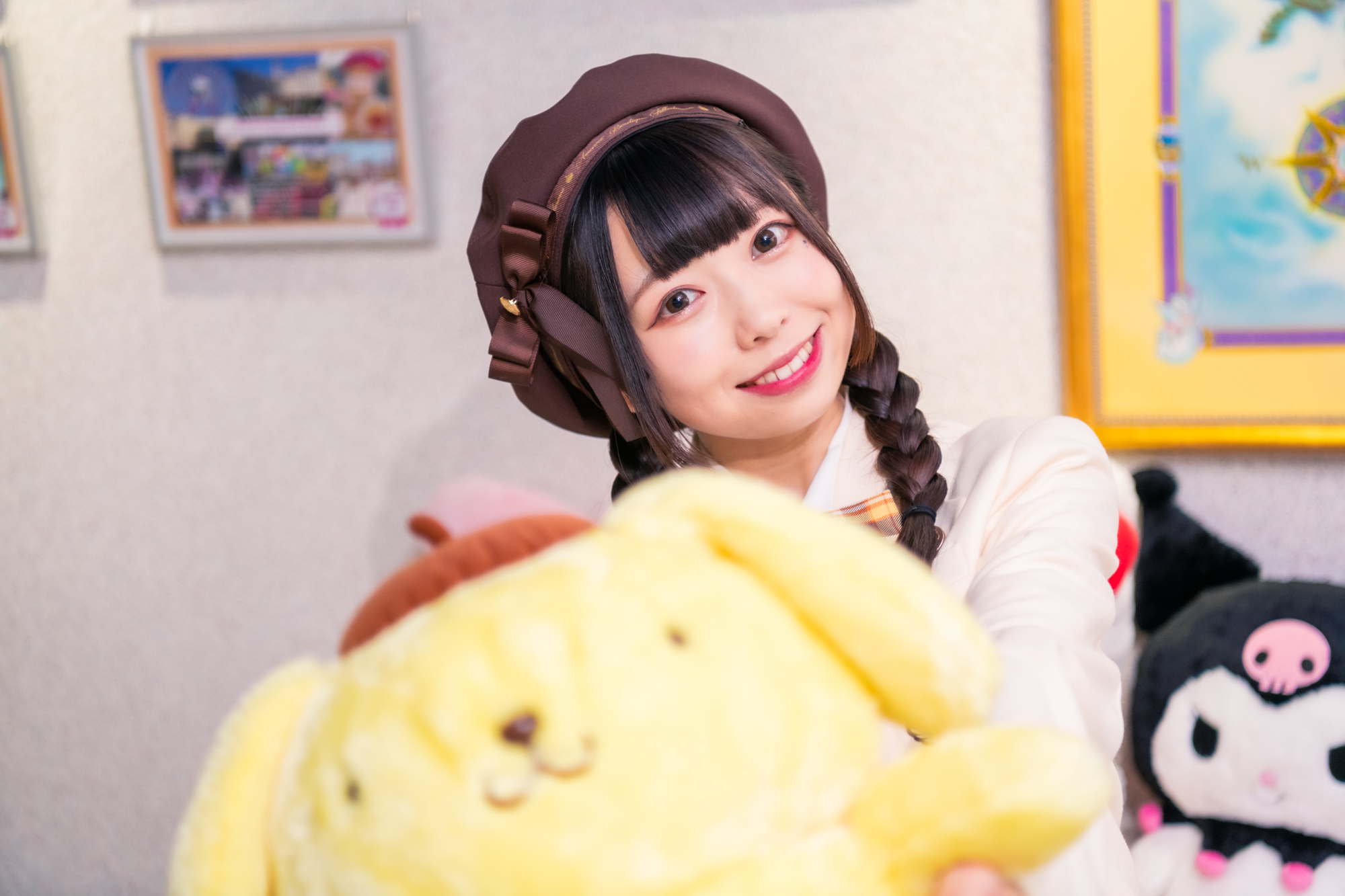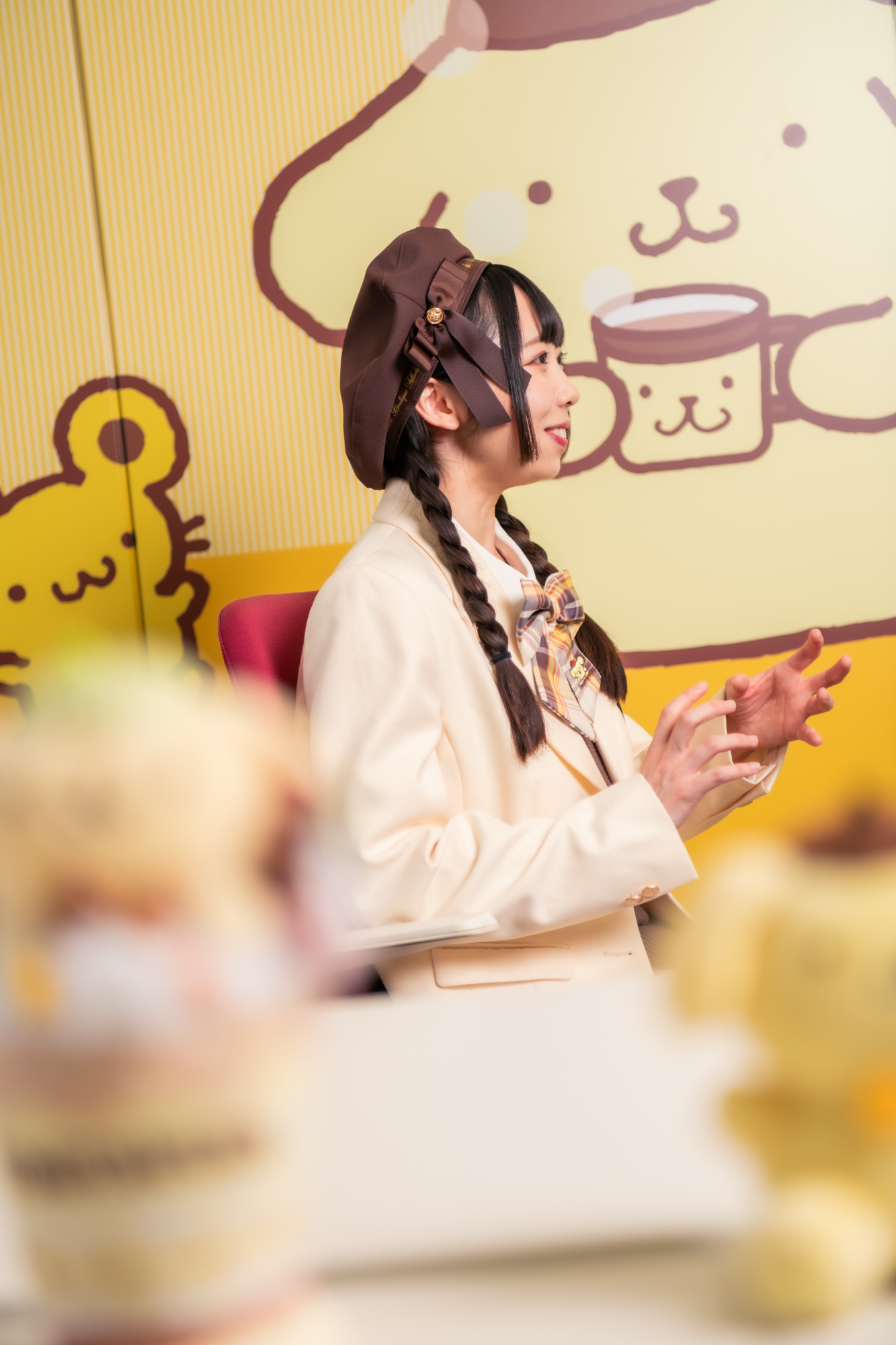 東京の中心に位置するサンリオの本社で、特別なアンバサダー任命式が盛大に行われました。そこで、全身を可愛らしいポムポムプリンでコーディネートした衣装で登場したのは深川史那さん。彼女が特別にレセプションルームを訪れた瞬間、そこにはサンリオの歴史がぎっしり詰まったグリーティングカードから始まり、過去愛されてきた数々のグッズたちが彼女を迎え入れました。